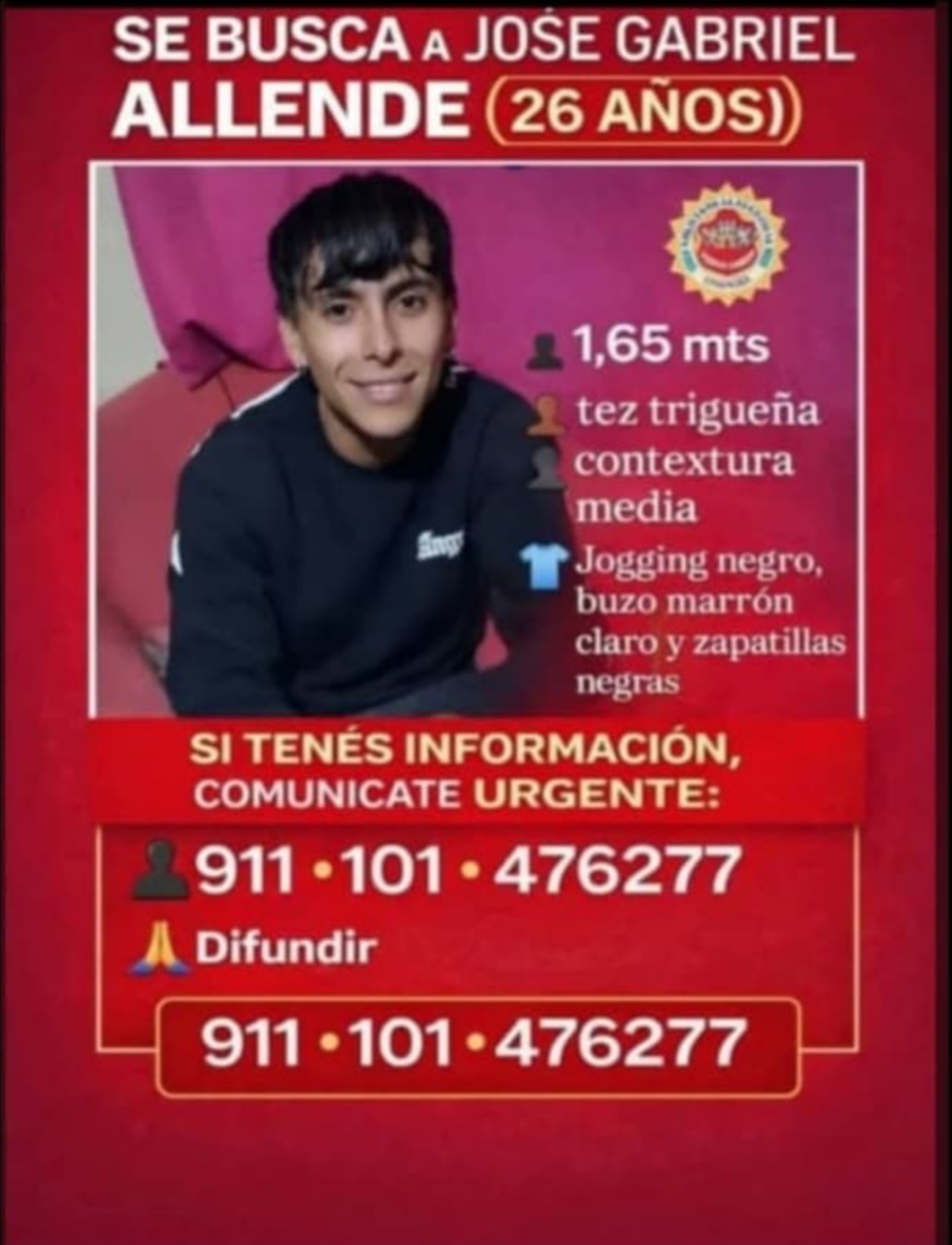 Por otra parte, familiares y allegados convocaron para este juevesa las 12:30 a un corte de la Ruta Provincial 34, conocido como Camino de las Altas Cumbres, a la altura del semáforo;con el objetivo de pedir por la pronta aparición de José Gabriel Allende.